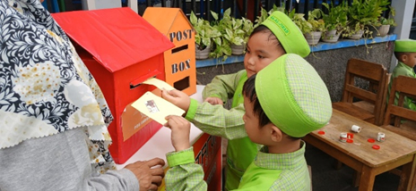 Kegiatan dimulai dengan pengenalan alat komunikasi tradisional seperti kentongan yang mengandalkan getaran suara untuk menyampaikan pesan kepada khalayak. Anak-anak tampak sangat antusias saat mencoba memukul kentongan secara bergantian sembari mempelajari pola bunyi yang melambangkan tanda bahaya atau panggilan berkumpul. Selain itu, mereka juga diperkenalkan dengan media surat-menyurat manual yang menggunakan kertas dan prangko. Sesi ini bertujuan untuk melatih kesabaran serta ketelitian siswa dalam menyusun pesan, sebuah nilai yang mulai memudar di tengah kecepatan era digital yang serba instan.