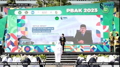 Sebanyak 4.127 Maliki Muda, sebutan untuk mahasiswa baru, mengikuti acara PBAK tahun 2023. Berbeda dari tahun-tahun sebelumnya, pada tahun ini UIN Malang membuka pintu untuk mahasiswa asing dari berbagai negara. Uniknya, tahun ini didapati satu peserta Maliki muda non muslim di Fakultas Psikologi yang berasal dari Flores. Mahasiswi tersebut maju ke depan panggung dan dinobatkan sebagai Duta Moderasi Beragama. “Selamat datang kepada seluruh Mahasiswa Baru UIN Maulana Malik Ibrahim Malang khususnya ananda Theresia Labria Nagawea dari Flores, Saya nobatkan ananda sebagai Duta Moderasi Beragama, ” ujar Prof. Dr. A Muhtadi Ridwan, M. Ag sebagai Ketua Senat.